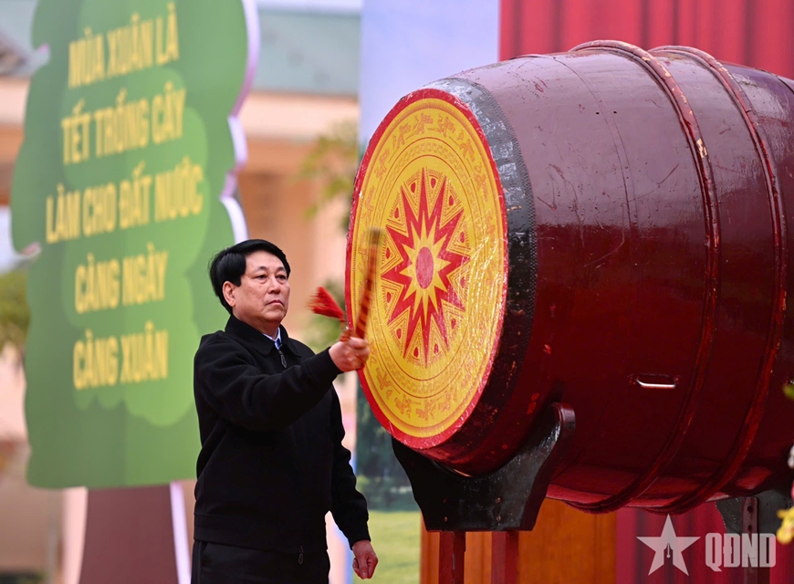 Chủ tịch nước Lương Cường đánh trống khai lễ trồng cây