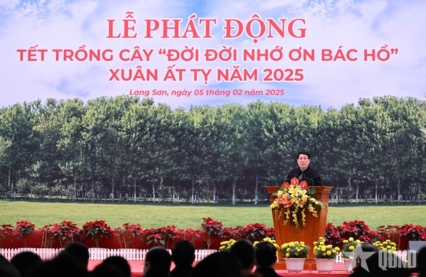 Phát biểu tại Lễ phát động “Tết trồng cây đời đời nhớ ơn Bác Hồ”, Chủ tịch nước Lương Cường nhấn mạnh, trong suốt chiều dài lịch sử, rừng và cây xanh không chỉ là biểu tượng của sự sống, mà còn là minh chứng cho sự gắn kết bền vững giữa con người với thiên nhiên. Ngày 10-1-1960 (Xuân Canh Tý) khi cùng đồng bào Thủ đô trồng cây ở công viên hồ Bảy Mẫu (nay là Công viên Thống Nhất), Bác Hồ kính yêu đã dạy: “Mùa xuân là Tết trồng cây / Làm cho đất nước càng ngày càng Xuân". Thực hiện lời dạy của Người, trong suốt 65 năm qua, phong trào “Tết trồng cây đời đời nhớ ơn Bác Hồ" mỗi khi Tết đến, Xuân về đã trở thành truyền thống, một tập quán tốt đẹp của dân tộc ta, một hoạt động mang ý nghĩa sâu sắc trong việc bảo vệ và phát triển môi trường sinh thái, bảo tồn thiên nhiên, đồng thời cũng thể hiện tình yêu quê hương đất nước, lòng trân trọng với những giá trị văn hóa truyền thống được phát huy và tiếp tục lan tỏa mạnh mẽ trong cộng đồng.