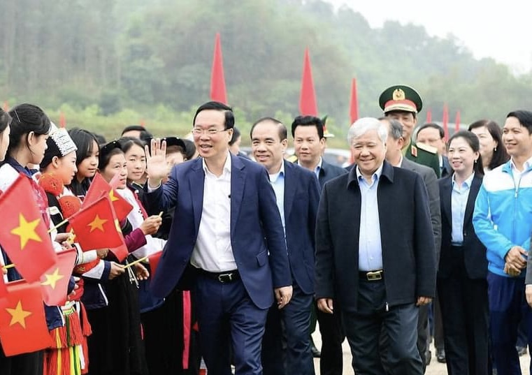 Chủ tịch nước Võ Văn Thưởng và các đại biểu tham gia trồng cây tại Lễ phát động Tết trồng cây “Đời đời nhớ ơn Bác Hồ” Xuân Giáp Thìn 2024