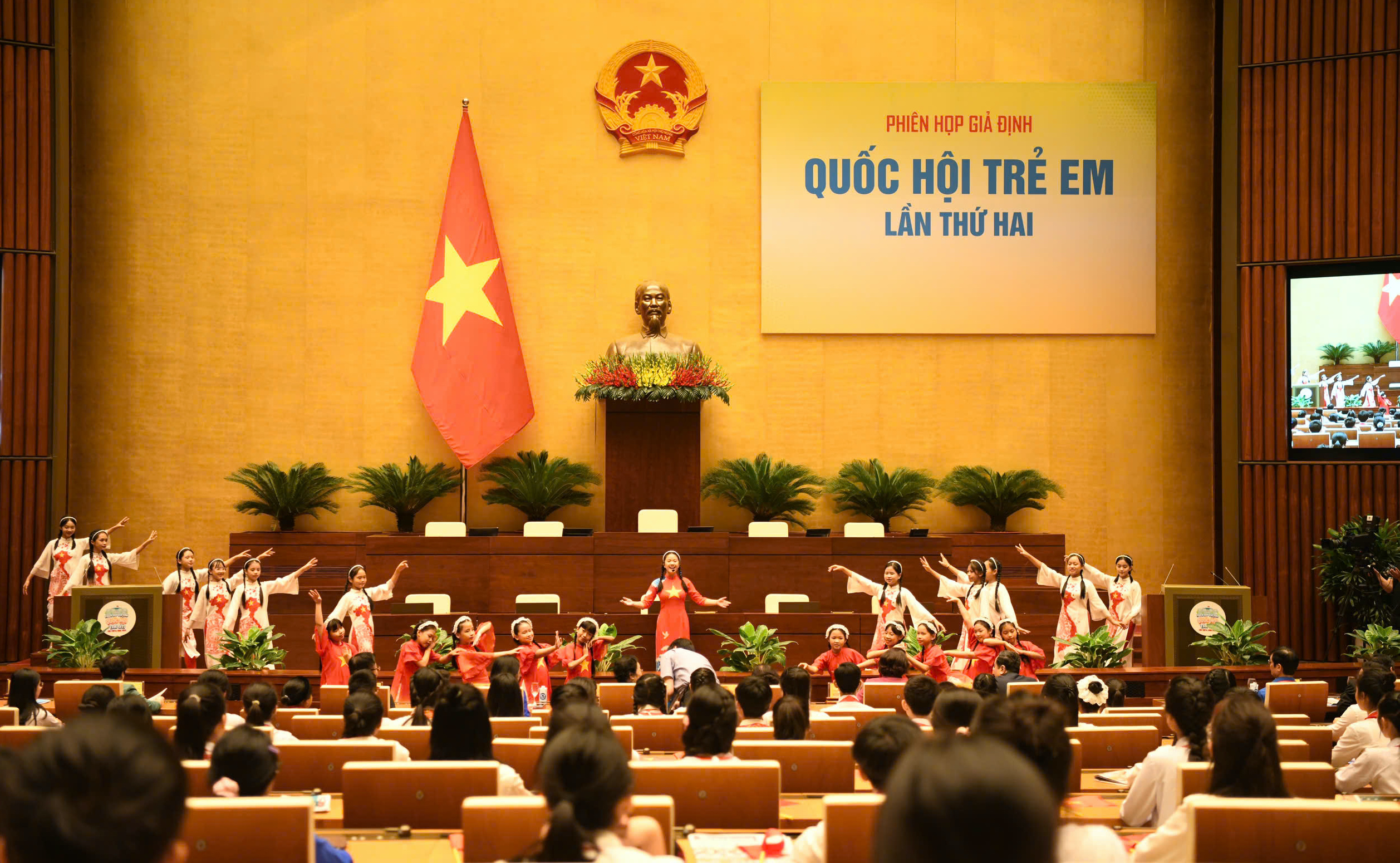 Tiết mục văn nghệ của các em thiếu nhi tại Phiên họp giả định “Quốc hội trẻ em” lần thứ II, năm 2024