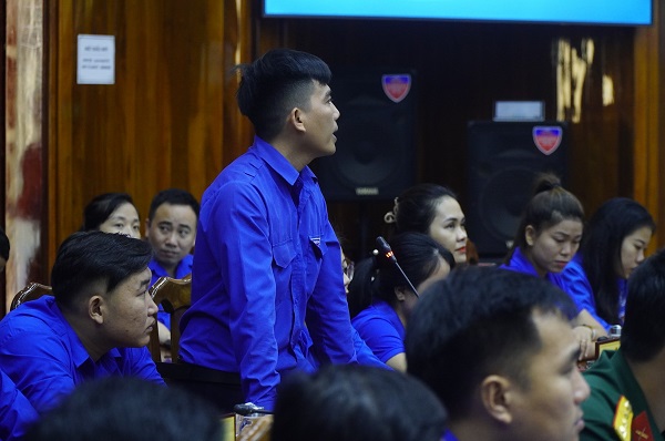 Đại diện tuổi trẻ bộ đội biên phòng đặt câu hỏi cho lãnh đạo tỉnh