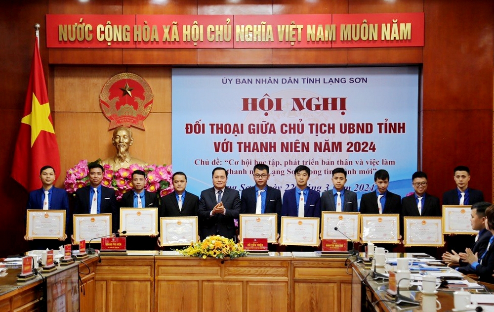 Đánh giá kết quả thực hiện chủ đề đối thoại năm 2023, Chủ tịch UBND tỉnh đã biểu dương, trao tặng Bằng khen cho 10 thanh niên tiêu biểu có nhiều đóng góp trong thực hiện thực hiện chủ đề đối thoại năm 2023: “Thanh niên Lạng Sơn khởi nghiệp, lập nghiệp gắn với xây dựng nông thôn mới”.