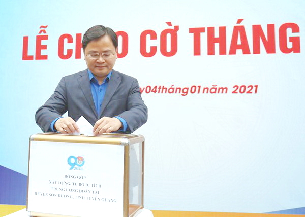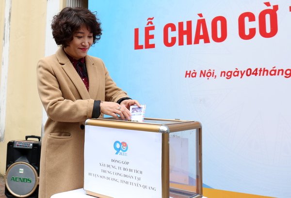 Tại lễ chào cờ, Công đoàn - Đoàn Thanh niên cơ quan Trung ương Đoàn đã phát động đóng góp để tu sửa, tôn tạo khu di tích Nhà bia "Nơi Trung ương Đoàn Thanh niên cứu quốc Việt Nam ở và làm việc năm 1953" tại huyện Sơn Dương, tỉnh Tuyên Quang. Đây là công trình trọng điểm chào mừng 90 năm Ngày thành lập Đoàn TNCS Hồ Chí Minh.
