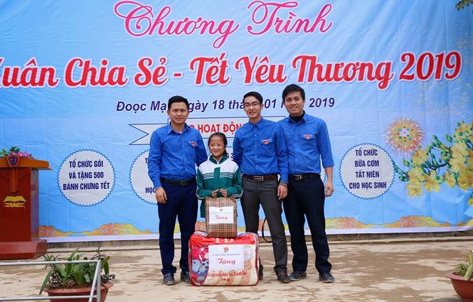 Chương trình "Xuân chia sẻ - Tết yêu thương" diễn ra với chuỗi các hoạt động: Khám chữa bệnh miễn phí cho 400 người dân; Gói, nấu và tặng 500 bánh chưng tết; Tặng 437 áo ấm và tổ chức bữa cơm tất niên cho toàn bộ học sinh xã Đọoc Mạy; trao và tặng 300 phần quà nhu yếu phẩm cho các hộ nghèo trên địa bàn xã.