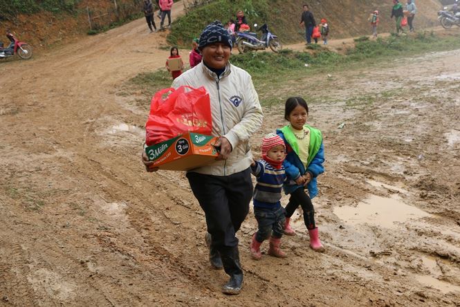 Niềm vui của người dân Đọoc Mạy khi đón nhận món quà dịp tết của chương trình.