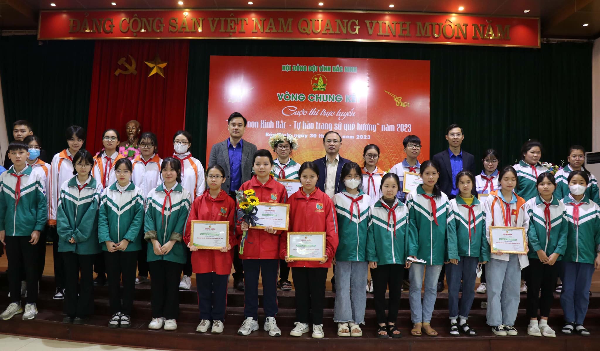 Đồng thời, Ban Tổ chức cũng trao Chứng nhận cho các thí sinh tham gia vòng Chung kết và Chứng nhận cho 03 tập thể có số lượng thí sinh tham gia cuộc thi đông nhất: THCS Tiền An, Tiểu học & THCS Hoàng Hoa Thám (Thành phố Bắc Ninh), THCS Ngọc Xá (Quế Võ) . Cuôc thi “Măng non Kinh Bắc - Tự hào trang sử quê hương” là sân chơi trí tuệ, trang bị những kiến thức, kỹ năng tuyên truyền về lịch sử văn hiến quê hương Kinh Bắc một cách hứng thú, từng bước xây dựng thế hệ thiếu nhi hiểu biết về lịch sử quê hương; giúp các em hoàn thiện nhân cách, phấn đấu trở thành con ngoan, trò giỏi, đội viên tốt, cháu ngoan Bác Hồ.
