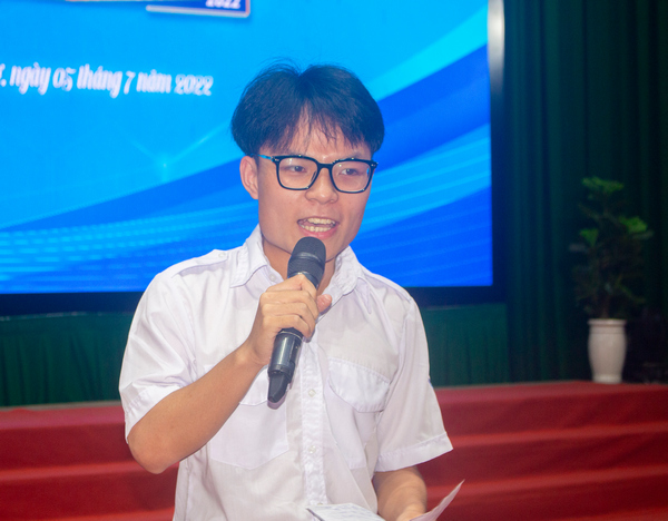 Bạn Lâm Hoàng Tiến, Ủy viên BCH Chi hội Ngã Năm - Thạnh Trị - Mỹ Xuyên, Trường Đại học Y Dược Cần Thơ thực hiện phần thi thuyết trình.