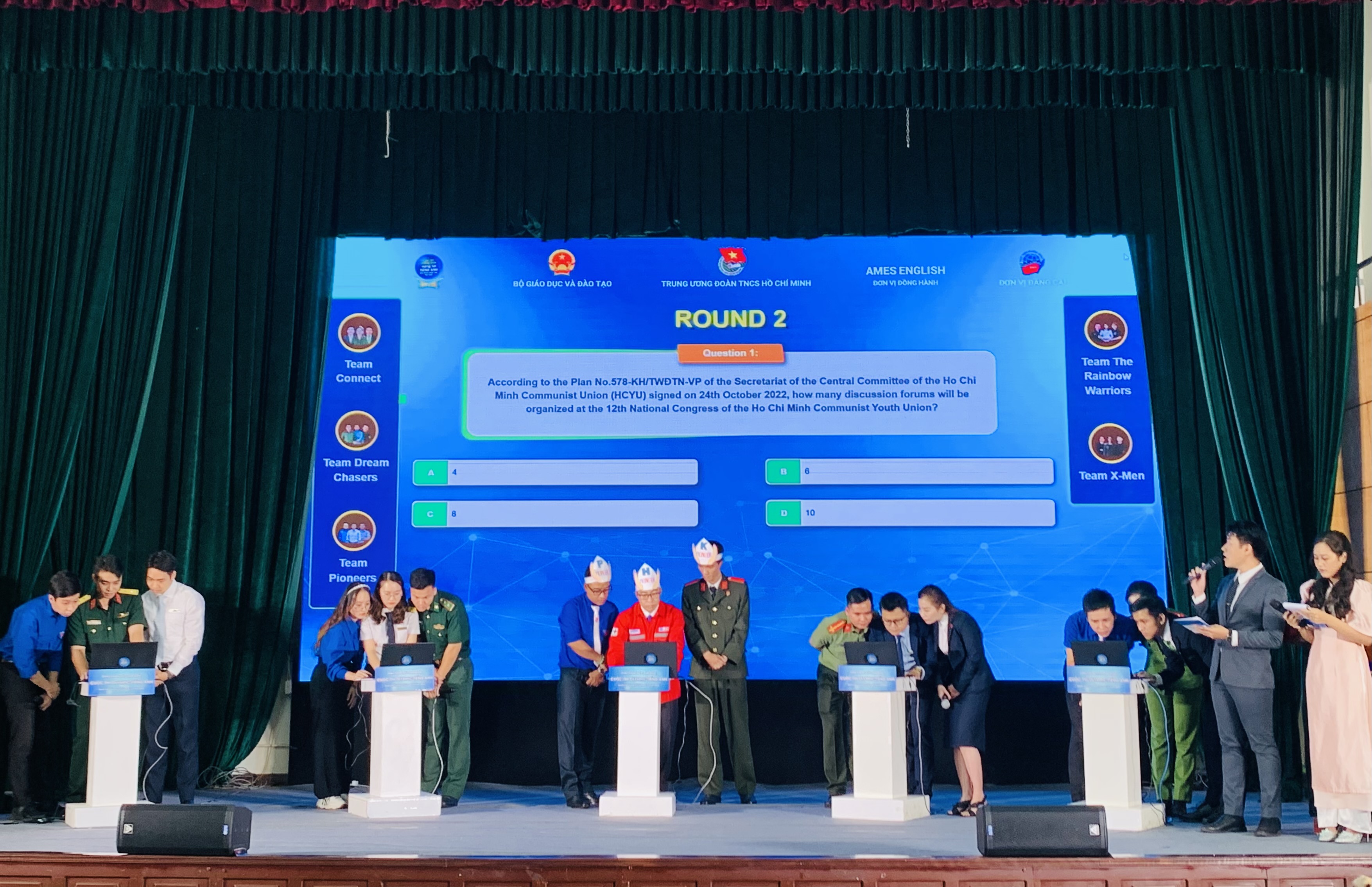Phần 2- Thách đấu: 05 đội chơi trả lời 10 câu hỏi kiến thức bằng tiếng Anh theo hình thức ấn chuông giành quyền trả lời trong vòng tối đa 10 giây. Kết thúc Phần 2, 03 đội chơi có kết quả cao nhất bước vào Phần 3.