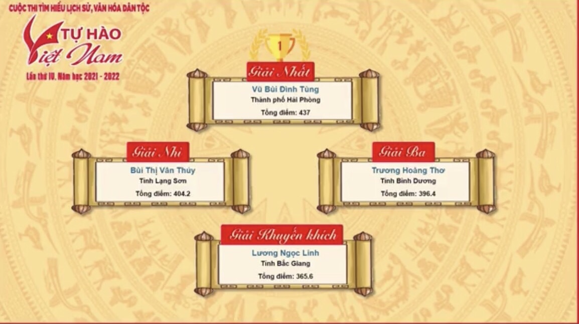 Khởi động từ ngày 20/12/2021, Cuộc thi tìm hiểu lịch sử, văn hóa dân tộc “Tự hào Việt Nam” lần thứ IV đã trải qua 8 tuần thi vòng loại trực tuyến cá nhân trên website: https://tuhaovietnam.doanthanhnien.vn/. Đã có 691.438 thí sinh tham gia dự thi, với gần 2 triệu lượt thí sinh tham gia thi. Căn cứ vào điểm thi và thời gian hoàn thành thi, Ban Tổ chức lựa chọn ra 1.260 thí sinh thành tích tốt nhất qua 8 tuần thi trực tuyến vào tranh tài tại vòng thi chung kết cấp tỉnh, thành phố.