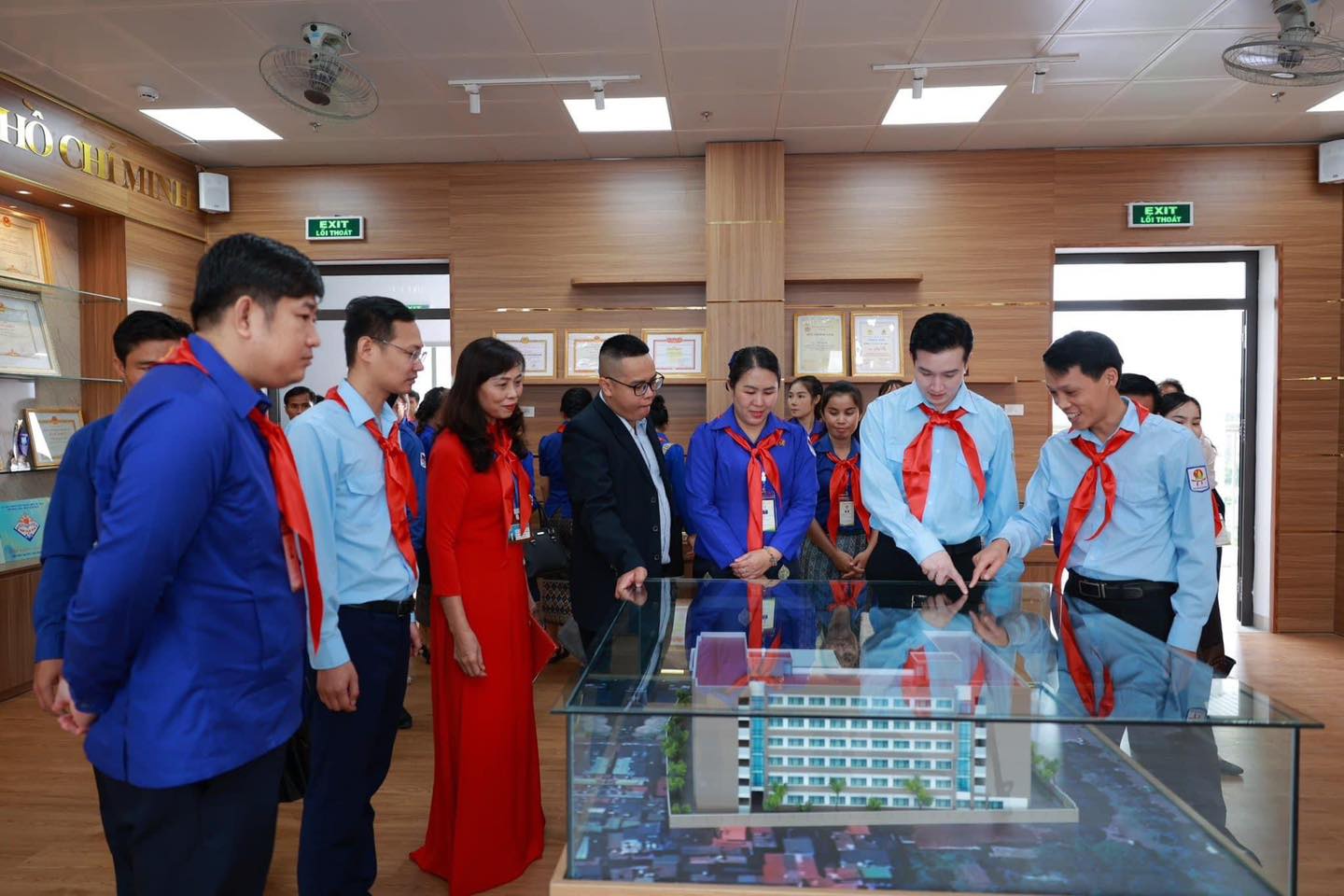 30 anh chị học viên Phụ trách thiếu nhi Thành đoàn Viêng Chăn, Lào đã được thưởng thức các tiết mục văn nghệ đặc sắc của thầy và trò nhà trường, xem trình diễn Áo dài và tham gia giao lưu văn nghệ với các tiết mục truyền thống của dân tộc Lào như: múa “Lăm vông sả là văn”, hát múa “Sảo xiểng khoảng”. Cũng nhân dịp này, đoàn đại biểu đã cùng tham dự Lễ khánh thành Công trình măng non “Nhà vệ sinh thân thiện” – là công sức của thầy và trò nhà trường trong hơn một tháng thi công, tham quan mô hình thư viện xanh, phòng truyền thống…