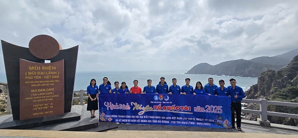 Tuổi trẻ hai tỉnh Hải Dương - Phú Yên tổ chức chương trình “Tôi yêu Tổ quốc tôi” chào cờ tại Mũi Điện (TX Đông Hòa).