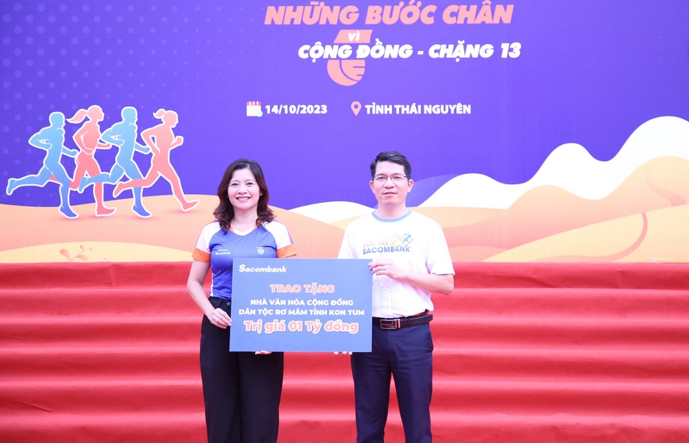Đặc biệt, với mỗi km đi bộ/chạy bộ của hội viên, thanh niên, người dân, Sacombank sẽ đóng góp 1.000 đồng vào quỹ xây dựng 16 nhà văn hóa cộng đồng cho 16 dân tộc thiểu số ít người (mỗi nhà văn hoá cộng đồng có trị giá 01 tỷ đồng).
