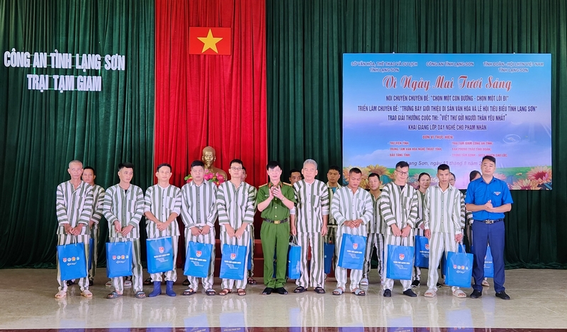 Đại diện Lãnh đạo Công an tỉnh và Tỉnh đoàn - Hội LHTN Việt Nam tỉnh Lạng Sơn trao tặng quà cho các phạm nhân