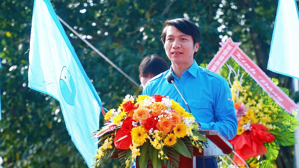 Anh Nguyễn Ngọc Lương, Bí thư Thường trực BCH Trung ương Đoàn, Chủ tịch Trung ương Hội LHTN Việt Nam phát biểu tại chương trình