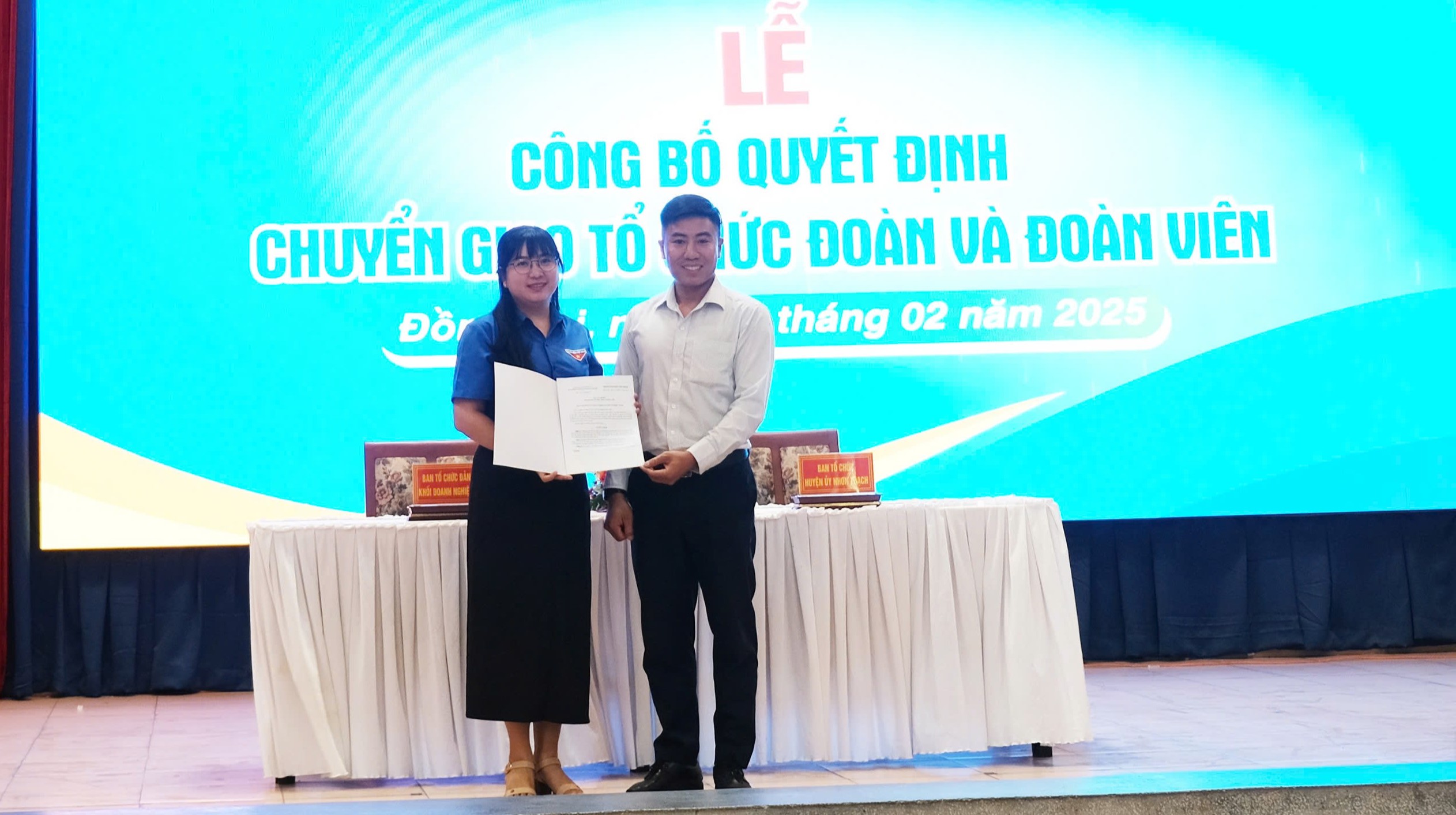 Theo Quyết định số 2057 ngày 23/1/2025 của Ban Thường vụ Tỉnh ủy Đồng Nai về chuyển giao tổ chức cơ sở đảng và đảng viên trực thuộc Đảng bộ Khối doanh nghiệp tỉnh Đồng Nai, Đoàn Khối doanh nghiệp tỉnh đã bàn giao 17 tổ chức cơ sở đoàn với 303 đoàn viên trực thuộc Đoàn Khối doanh nghiệp tỉnh về sinh hoạt tại Thành đoàn Biên Hòa.