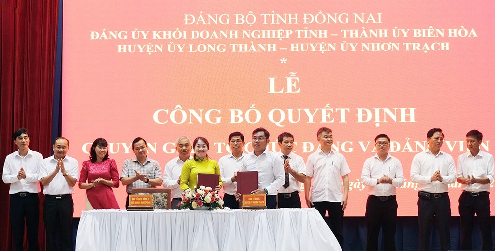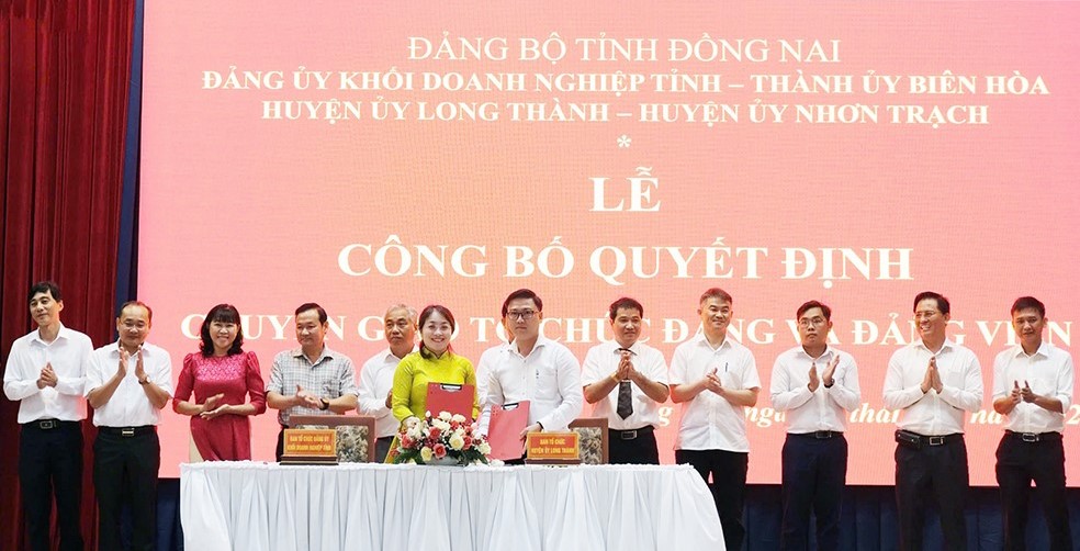 Ngay sau đó, đại diện Thành ủy Biên Hòa, Huyện ủy Long Thành và Huyện ủy Nhơn Trạch đã công bố các quyết định của các đơn vị này về việc tiếp nhận các tổ chức cơ sở đảng và đảng viên thuộc Đảng bộ Khối doanh nghiệp tỉnh và thực hiện nghi thức ký kết biên bản bàn giao.