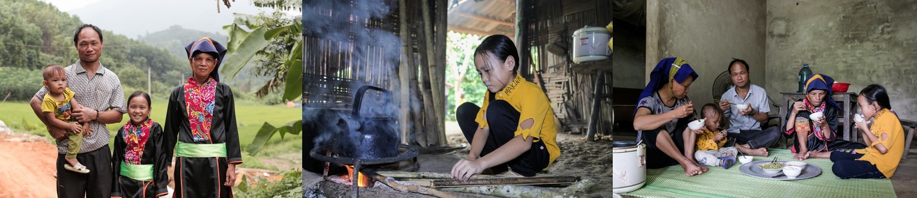 Từ trường về nhà, cô bé vừa đặt em xuống với bố lại chạy vội đi nấu cơm, cho đàn vịt ăn, quét dọn sân vườn. Mâm cơm của cả gia đình 5 người chỉ vỏn vẹn một đĩa đỗ xào muối trắng, bát quả trám rừng kho riềng. Thỉnh thoảng, để dễ ăn, Lan lại đứng dậy đổ thêm nước lọc vào cơm rồi vừa ăn vừa kể chuyện trên lớp cho bà và bố mẹ nghe.