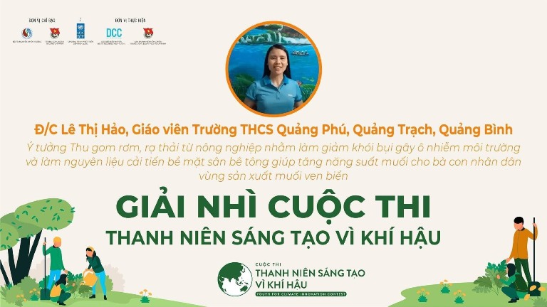 Cô Lê Thị Hảo - giáo viên trường THCS Quảng Phú, huyện Quảng Trạch xuất sắc giành giải nhì Cuộc thi “Thanh niên sáng tạo vì khí hậu – Youth for Climate Innovation Contest”