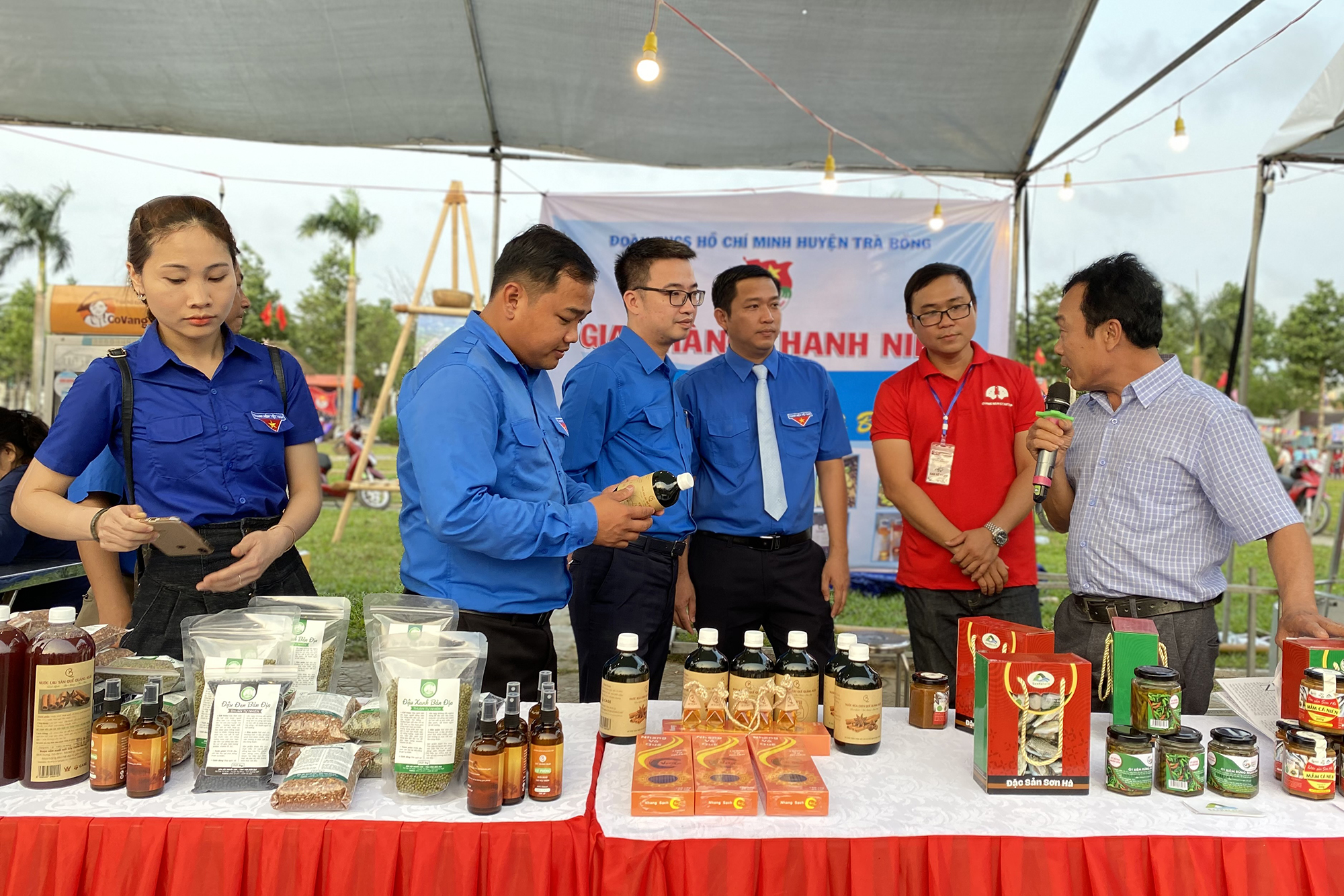 Anh Nguyễn Tường Lâm, Ủy viên Ban Thường vụ, Trưởng Ban Đoàn kết tập hợp thanh niên Trung ương Đoàn, Phó Chủ tịch thường trực Trung ương Hội Liên hiệp Thanh niên Việt Nam thăm các gian hàng và dự lễ kỷ niệm 90 năm Ngày thành lập Đoàn tại Quảng Ngãi