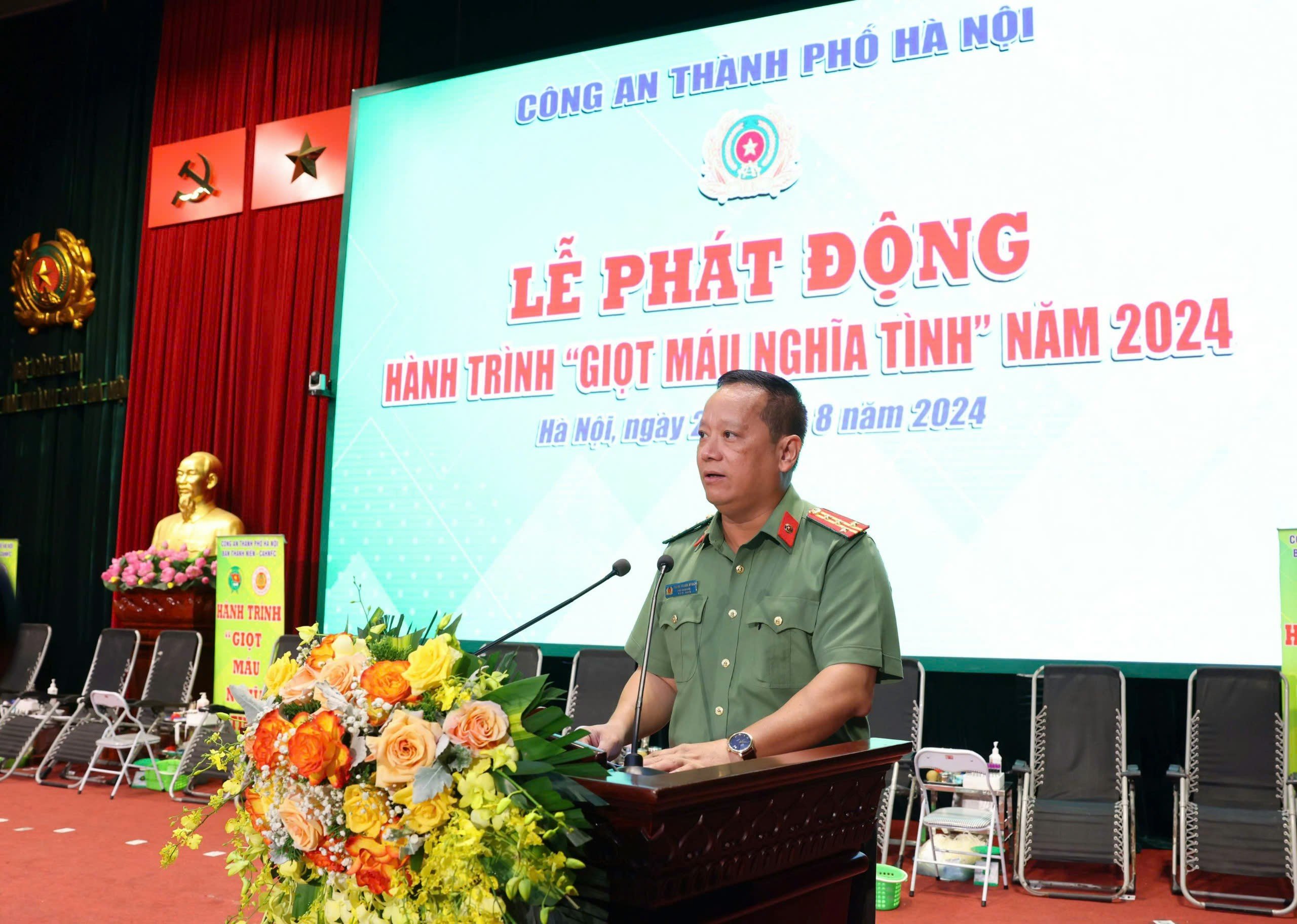 Phát biểu tại buổi lễ, Đại tá Phạm Thanh Hùng, Phó Giám đốc CATP Hà Nội cho biết: Những năm qua, Đảng ủy - Ban Giám đốc Công an Thành phố đã chỉ đạo cấp ủy, chỉ huy các đơn vị, các tổ chức đoàn thể thường xuyên quan tâm làm tốt công tác hiến máu tình nguyện và đã vận động 29.492 lượt cán bộ, chiến sỹ hiến tặng 25.276 đơn vị máu góp phần giải quyết tình trạng khan hiếm máu; qua đó đã đề cao và phát huy tinh thần tương thân, tương ái, nghĩa tình của người cán bộ, chiến sỹ Công an Thủ đô, sẵn sàng chia sẻ phần máu của mình để cứu giúp đồng đội và người bệnh.