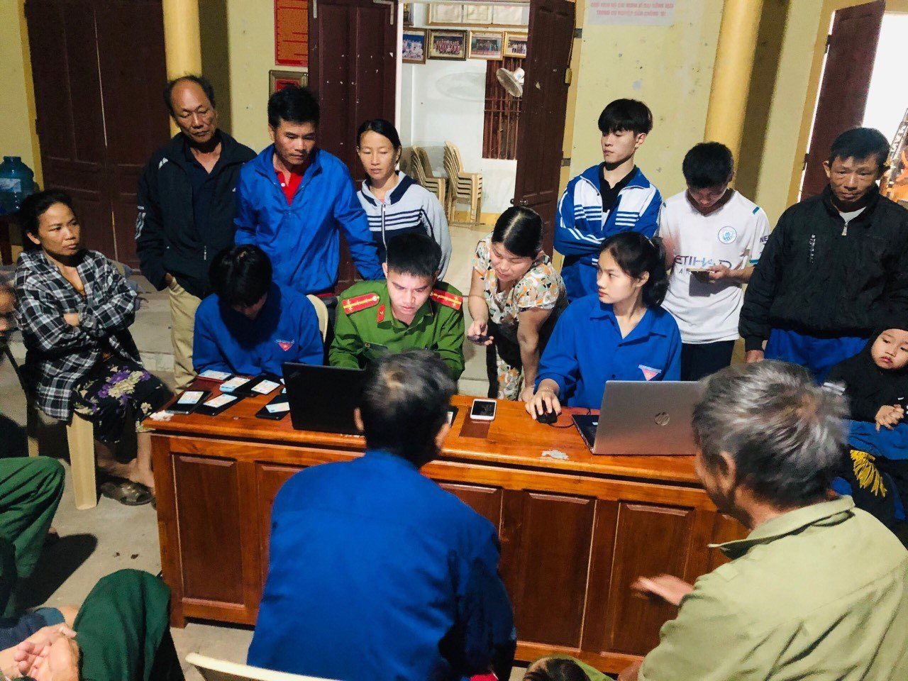 Công an các đơn vị địa phương cùng các tổ chức Đoàn cơ sở cài đặt, kích hoạt tài khoản định danh điện tử cho người dân trên địa bàn