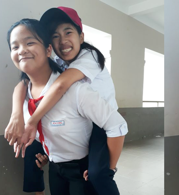 Quỳnh Anh cõng bạn Gia Hân mỗi lần đến lớp