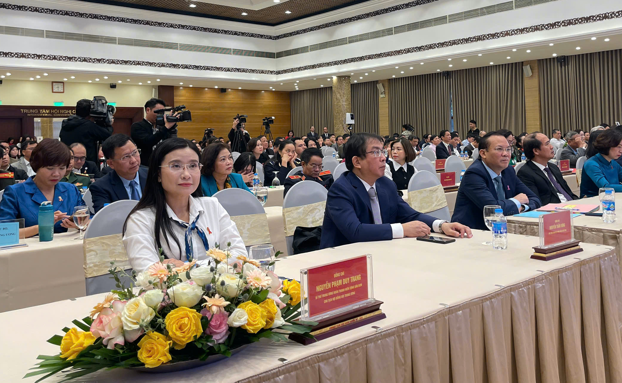Đồng chí Nguyễn Phạm Duy Trang, Bí thư Trung ương Đoàn, Chủ tịch Hội đồng Đội Trung ương (áo trắng) tham dự chương trình