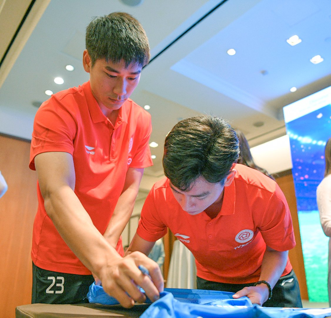Hai cầu thủ quốc gia Nhâm Mạnh Dũng và Phan Tuấn Tài ký áo đấu chính thức của Giải