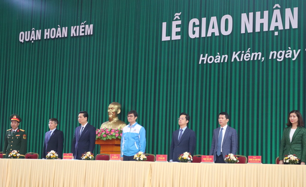 Cùng tham dự có lãnh đạo Quận uỷ, HĐND, UBND, Uỷ ban MTTQ Việt Nam quận Hoàn Kiếm; 62 công dân nhập ngũ năm 2025.