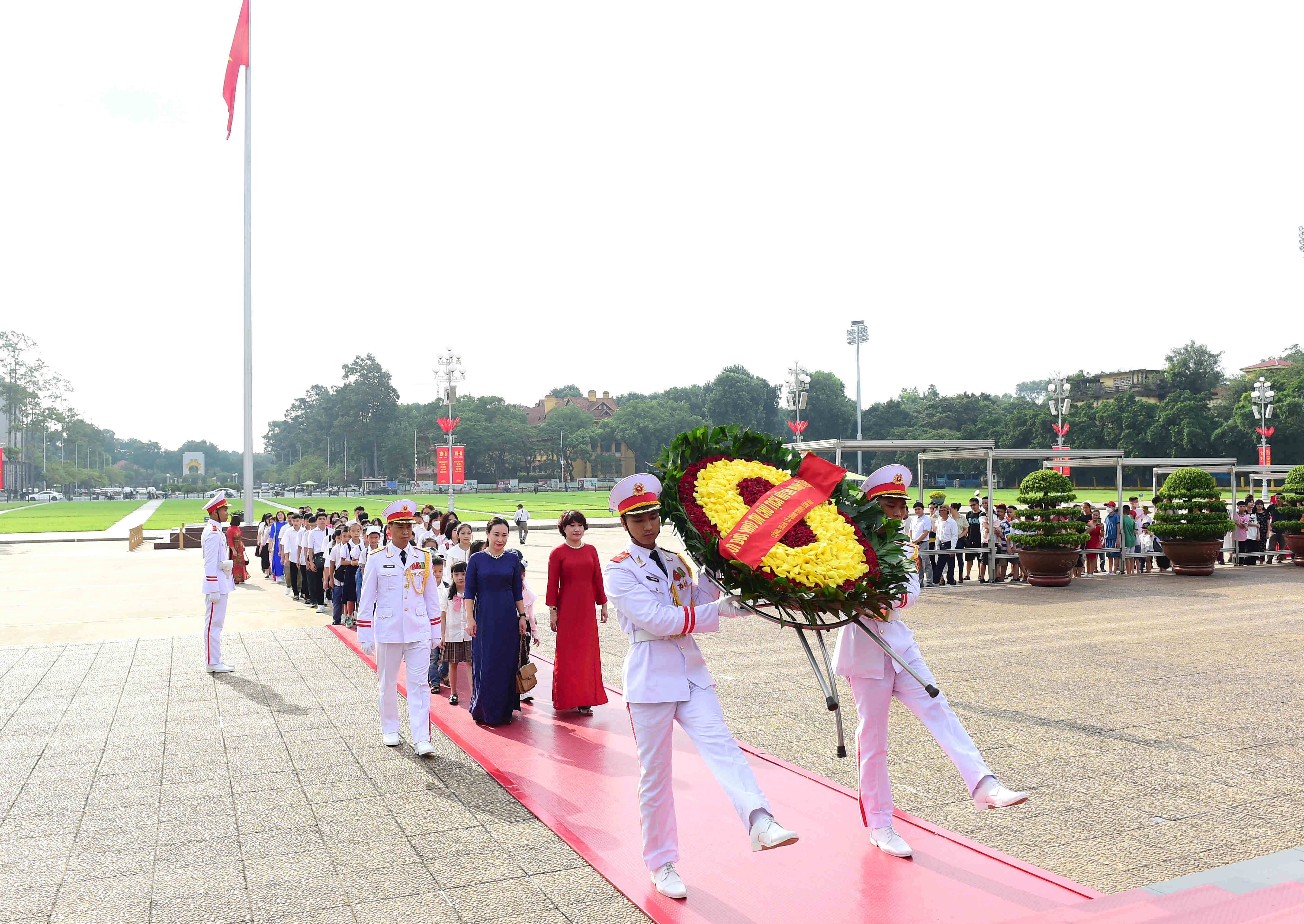 Trước đó, 59 học sinh dự Lễ tuyên dương đã vào Lăng viếng Bác và thăm quan Phủ Chủ tịch.