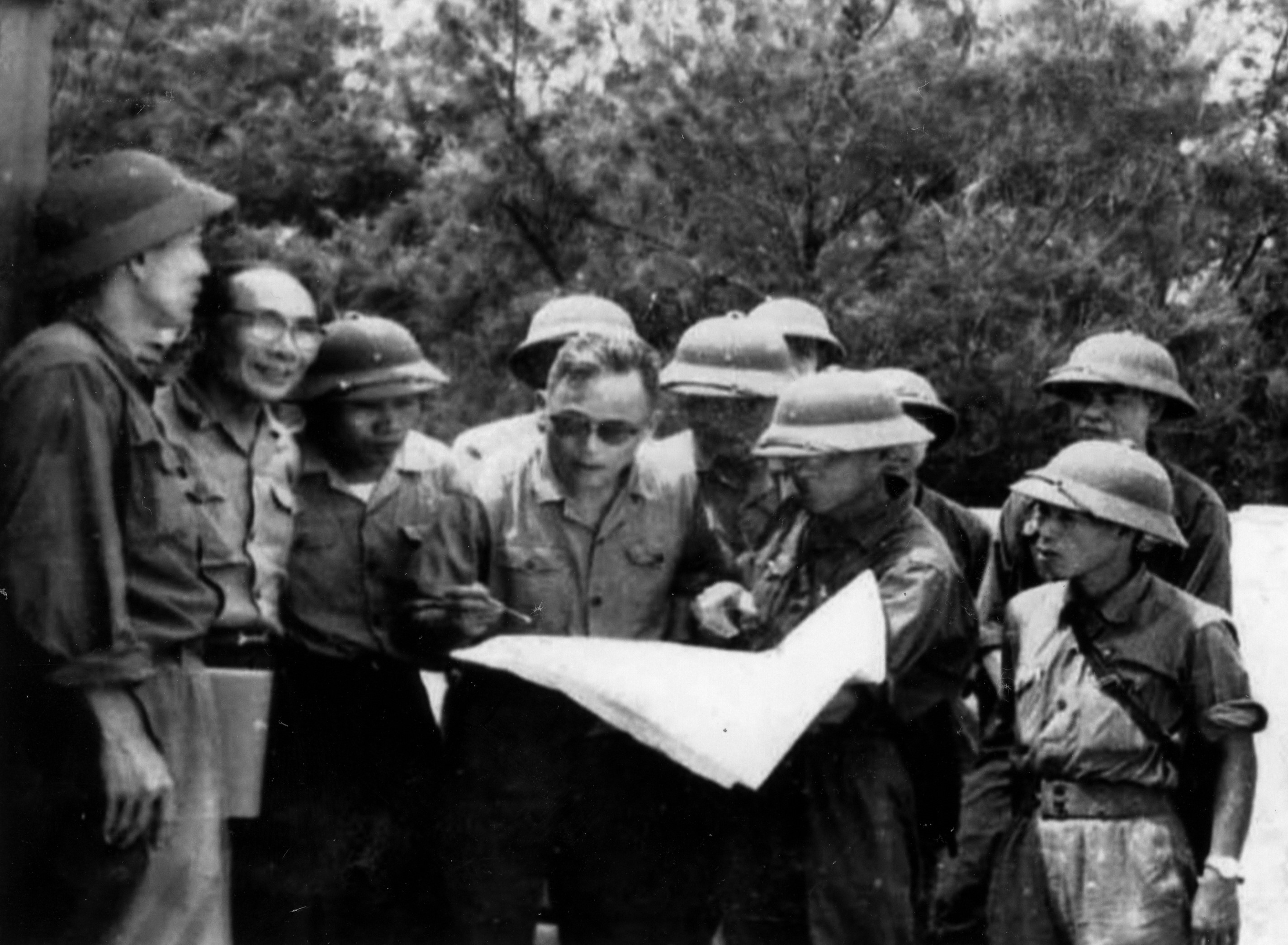 Đồng chí Võ Chí Công (thứ 2, từ trái sang) và Đại tướng Chu Huy Mân (đeo kính, thứ 4 từ trái sang) trong chiến dịch giải phóng thành phố Đà Nẵng (tháng 3-1975)_Ảnh: TTXVN