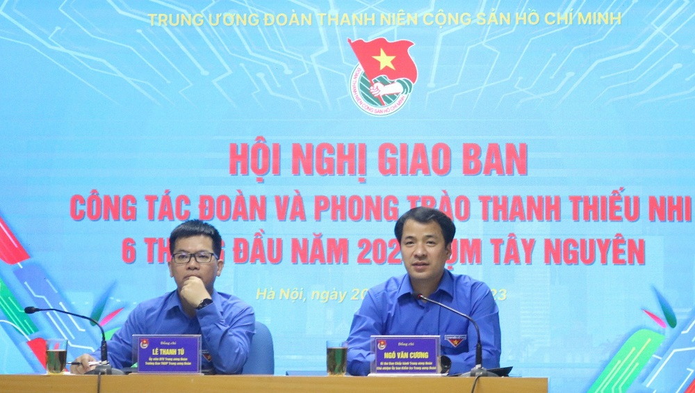 Chiều 20/6, Trung ương Đoàn tổ chức Hội nghị giao ban công tác Đoàn và phong trào thanh thiếu nhi 6 tháng đầu năm 2023 các tỉnh cụm Tây Nguyên. Hội nghị diễn ra theo hình thức trực tuyến tại điểm cầu Trung ương Đoàn và điểm cầu các tỉnh Lâm Đồng, Đắk Nông, Đắk Lắk, Kon Tum, Gia Lai. Đồng chí Ngô Văn Cương- Bí thư Trung ương Đoàn, Chủ nhiệm Ủy ban kiểm tra Trung ương Đoàn; đồng chí Lê Thanh Tú- Ủy viên BTV, Trưởng Ban TNXP T.Ư Đoàn, đơn vị thường trực Cụm chủ trì Hội nghị.