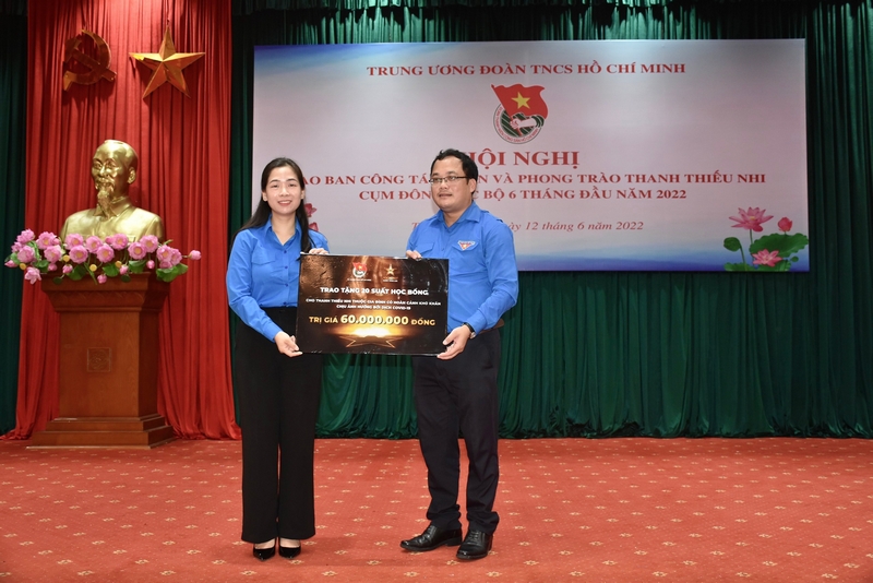 Nhân dịp này, Trung ương Đoàn TNCS Hồ Chí Minh trao tặng 20 suất học bổng cho thanh thiếu nhi thuộc gia đình có hoàn cảnh khó khăn chịu ảnh hưởng bởi dịch Covid-19 trị giá 60 triệu đồng.