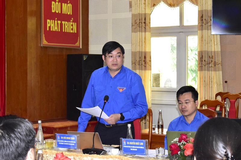 Đồng chí Bùi Minh Tuấn - Ủy viên BTV, Trưởng Ban Tổ chức Trung ương Đoàn phát biểu tại Hội nghị