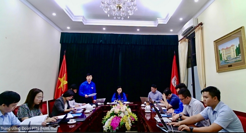 Đồng chí Nguyễn Phạm Duy Trang, Bí thư T.Ư Đoàn, Chủ tịch Hội đồng đội Trung ương chủ trì hội nghị tại điểm cầu Trung ương Đoàn