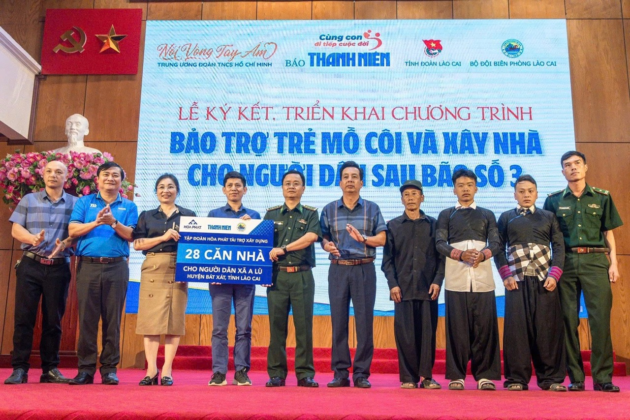 Bên cạnh đó, Tập đoàn Hòa Phát, Báo Thanh niên đã công bố xây dựng 28 nhà cho người dân bị ảnh hưởng bởi cơn bão số 3 trên địa bàn xã A Lù, huyện Bát Xát; hỗ trợ 2.000 suất quà cho các gia đình hộ nghèo, hộ cận nghèo, các gia đình chính sách, người có công bị ảnh hưởng bởi bão lũ, trong đó 200 suất cho các hộ dân tại chương trình, mỗi suất trị giá 1 triệu đồng.