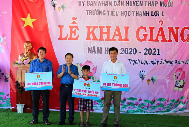 Cũng nhân dịp này, Thường trực Tỉnh đoàn Đồng Tháp đã tham dự Lễ khai giảng tại các điểm trường Tiểu học Thạnh Lợi 2 và trường THCS Thạnh Lợi; đồng thời thay mặt T.Ư Hội LHTN Việt Nam, Hội đồng Đội Trung ương gửi trao tặng các trường 50 suất quà (mỗi suất trị giá 500.000 đồng gồm ba lô, vở học sinh, bộ dụng cụ học tập), 10 suất học bổng (mỗi suất gồm 01 triệu đồng) cho các em học sinh. Đây là sự động viên, khích lệ giúp các em vượt qua khó khăn để vươn lên và thực hiện ước mơ của mình.