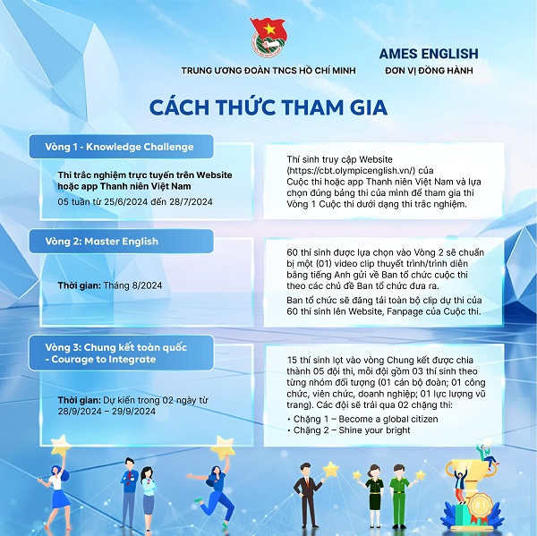 Thí sinh tham gia Cuộc thi bằng cách đăng ký và thi thử thông qua 02 nền tảng: Website https://cbt.olympicenglish.vn và App Thanh niên Việt Nam