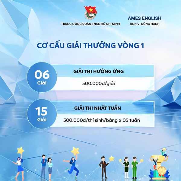 01 đội giải ba: 6.000.000đ, quà tặng, bằng khen của Trung ương Đoàn, suất học bổng tiếng Anh.