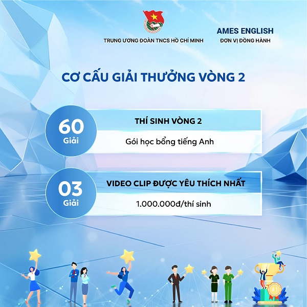 Vòng 2: 60 thí sinh tham gia Vòng Bán kết được nhận các gói học bổng tiếng Anh. Ba (03) thí sinh có video clip được yêu thích nhất nhận phần thưởng 1.000.000đ/thí sinh.