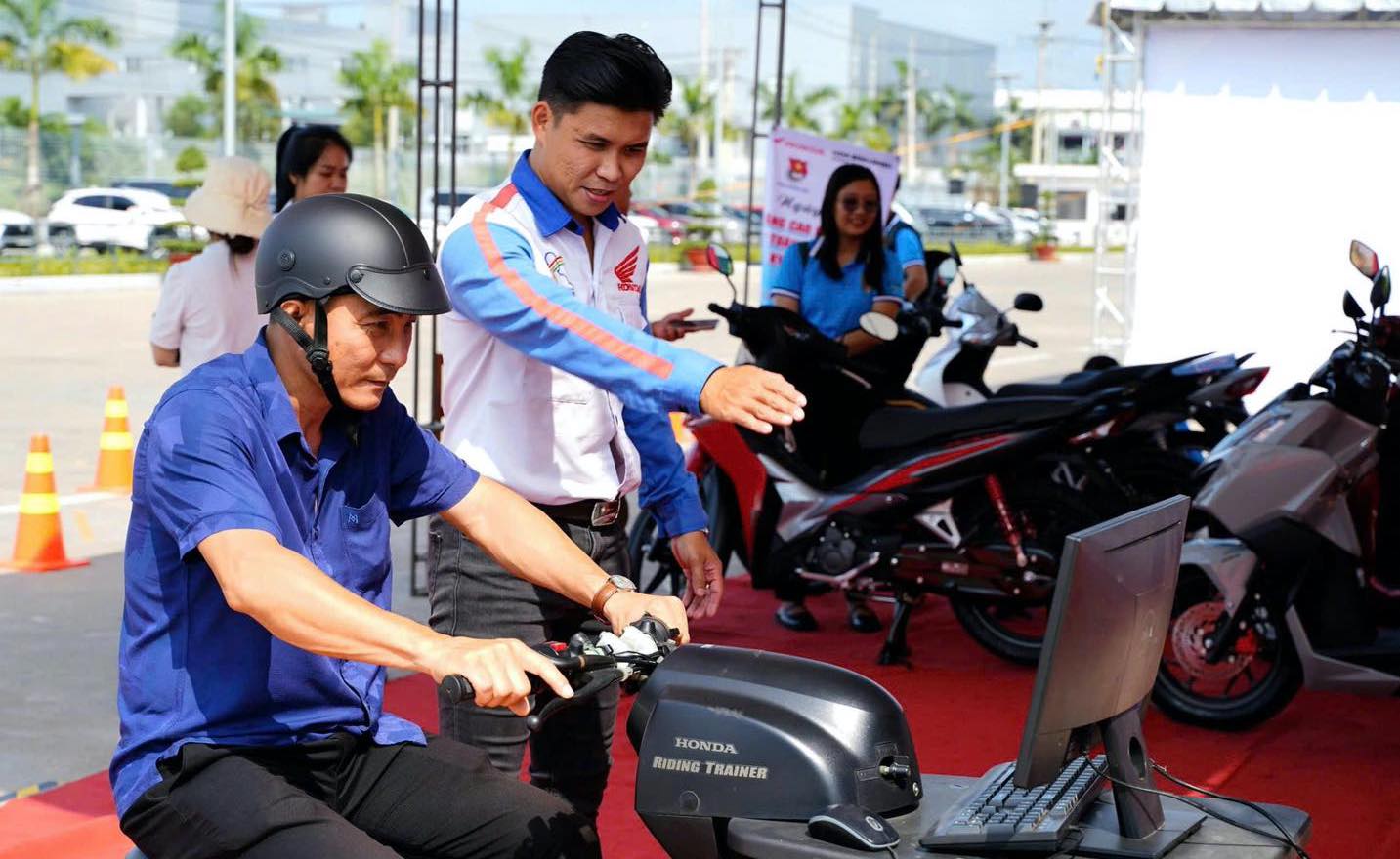 Đại biểu tham gia được hướng dẫn lái xe bằng mô hình ảo