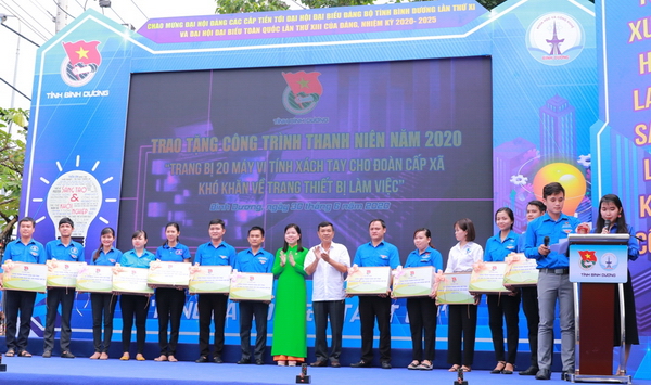 Trao tặng công trình thanh niên năm 2020 "Trang bị 20 máy vi tính xách tay cho Đoàn cấp xã khó khăn về trang thiết bị làm việc"