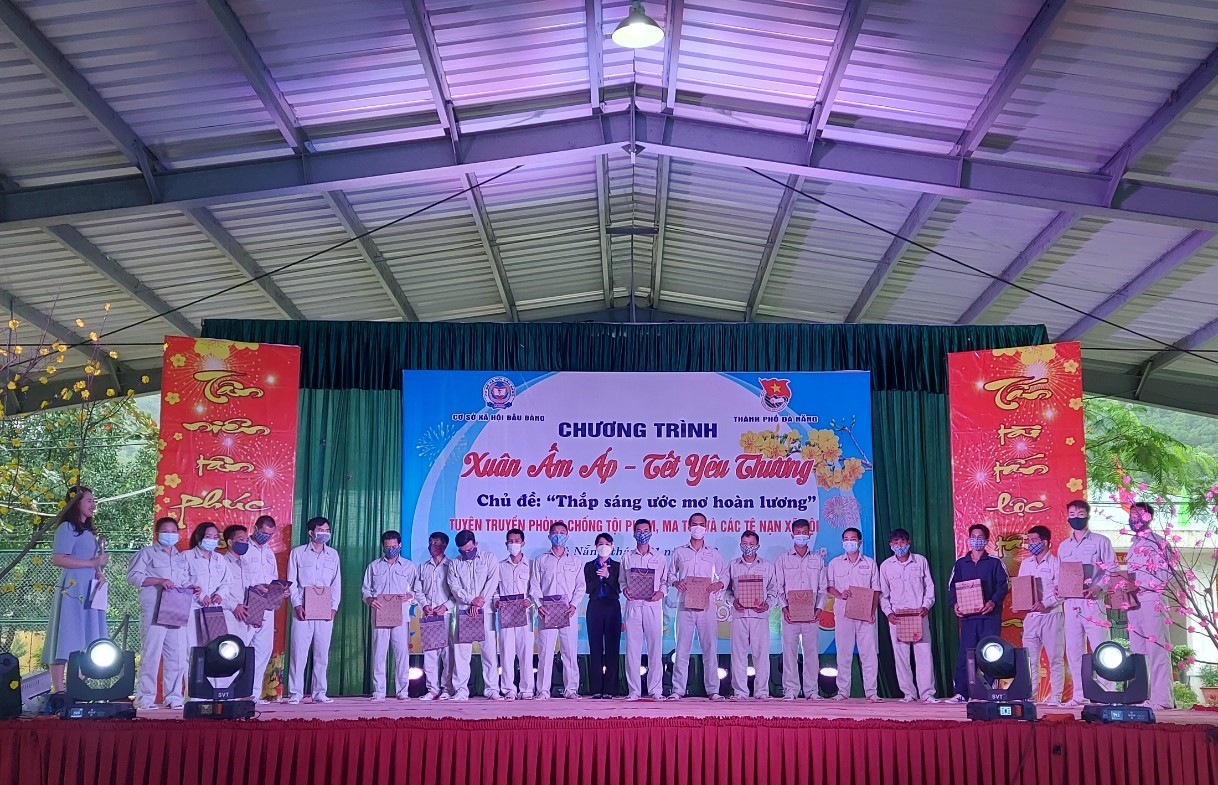 Phát biểu tại Chương trình, đồng chí Nguyễn Thị Anh Thảo – Phó Bí thư Thành Đoàn, Chủ tịch Hội đồng Đội thành phố Đà Nẵng mong muốn: Chương trình "Xuân ấm áp – Tết yêu thương” năm 2022 như một món quà tinh thần của ĐVTN thành phố cùng những chia sẻ của Chuyên gia tâm lý Thạc sĩ Trần Thị Kim Hạnh - Phó hiệu trưởng trường TH Hùng Vương quận Hải Châu thành phố Đà Nẵng về những nội dung thực tế xoay quanh vấn đề về ma tuý, hệ lụy gây ra và cách phòng chống các tệ nạn xã hội với thông điệp: Thắp sáng ước mơ hoàn lương – vì một tương lai tươi sáng dành cho các bạn học viên tại cơ sở xã hội Bầu Bàng.
