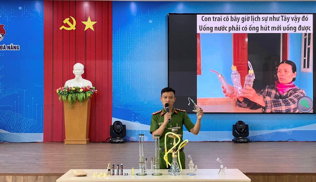 Đồng chí Đại úy Nguyễn Hồng Tâm, Bí thư Chi đoàn phòng Cảnh sát điều tra tội phạm về ma túy Công an thành phố Đà Nẵng đã truyền đạt những nội dung cơ bản về phòng chống tác hại của ma túy.