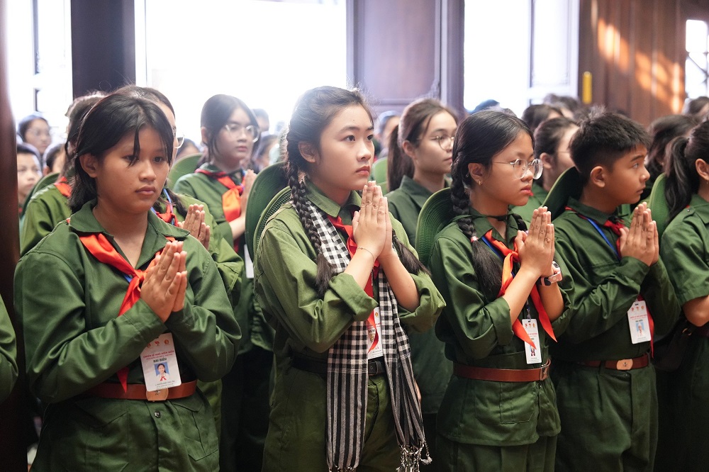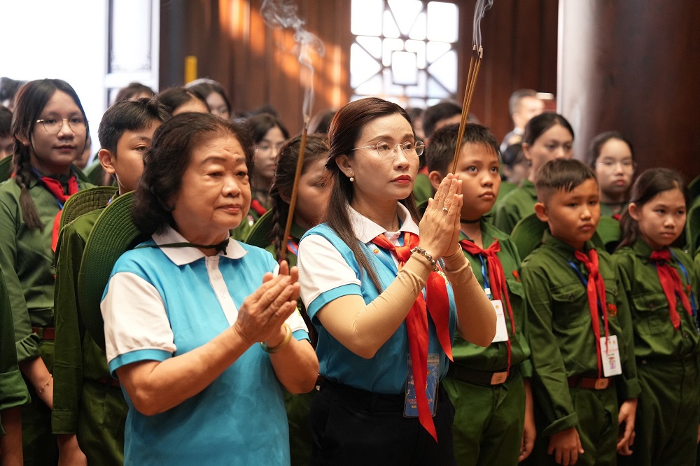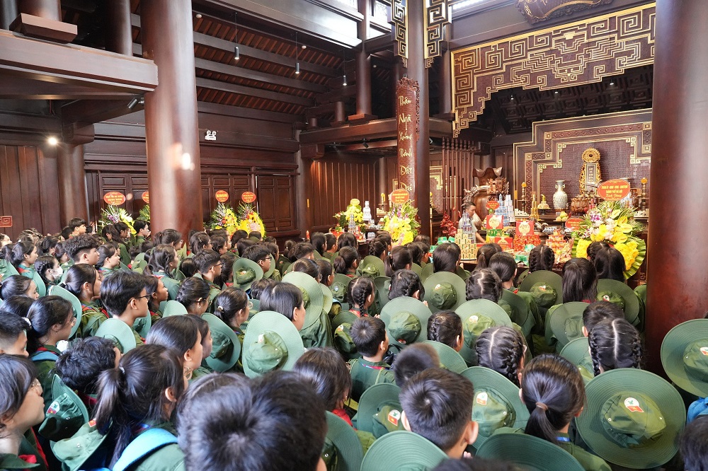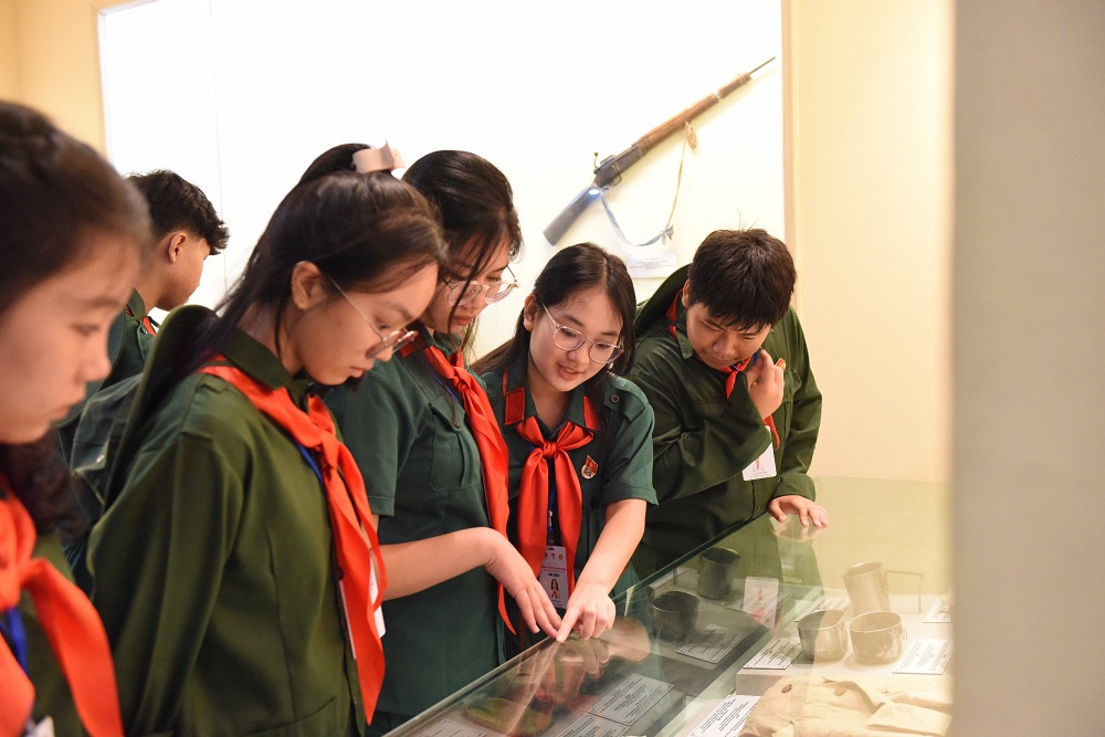 Sau lễ dâng hương, đoàn đại biểu đã tới tham quan Bảo tàng Điện Biên Phủ - nơi tôn vinh giá trị lịch sử của chiến thắng lừng lấy 5 châu, chấn động địa cầu. Thông qua các tài liệu, hiện vật tại Bảo tàng, những thông điệp ý nghĩa về lòng quả cảm, trí tuệ và tinh thần yêu nước của các thế hệ cha anh đã được lan truyền cho thế hệ thiếu nhi Việt Nam hôm nay.