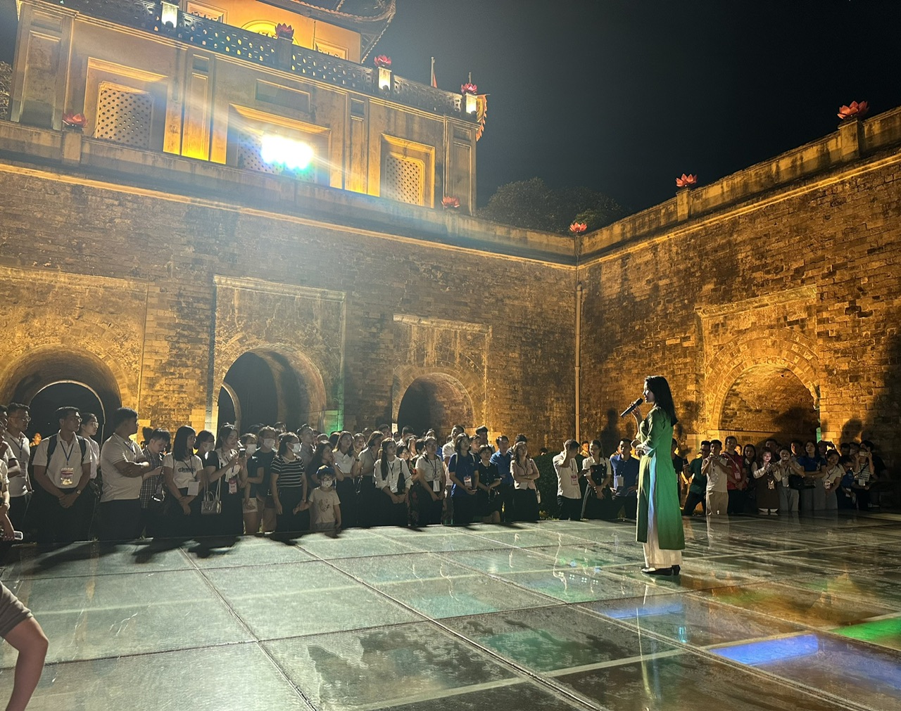 Tour đêm Giải mã Hoàng Thành Thăng Long kéo dài khoảng 90 phút, các đại biểu bắt đầu trải nghiệm từ Đoan Môn - cửa dẫn vào Cấm thành, nơi ở và làm việc của nhà vua xưa kia.