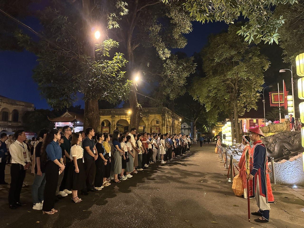 Tại Hoàng thành Thăng Long, các đại biểu được trải nghiệm tour đêm “Đêm Hoàng cung Thăng Long” với nhiều hoạt động hấp dẫn khám phá di sản Hoàng thành Thăng Long-Hà Nội. Không gian Hoàng thành Thăng Long về đêm được trang trí lung linh khiến nhiều đại biểu hào hứng.