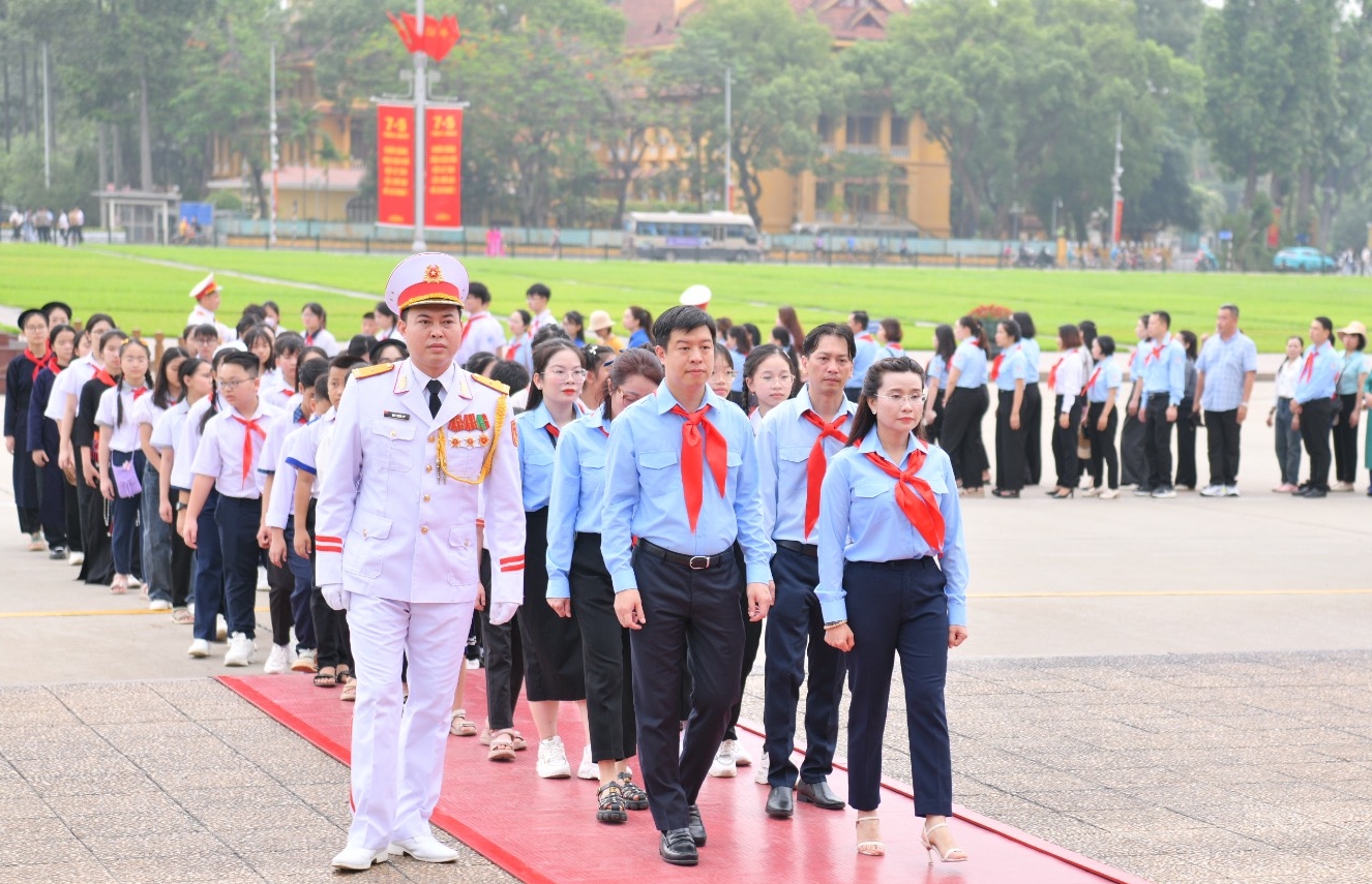 Sau lễ viếng Lăng, các đồng chí lãnh đạo cùng các em thiếu nhi, anh chị phụ trách đã cùng tham quan triển lãm “83 năm mùa hoa Đội ta lớn lên cùng đất nước”; không gian triển lãm trưng bày các hiện vật lịch sử Đội qua các thời kỳ, hình ảnh các phong trào, hoạt động qua các giai đoạn phát triển của tổ chức Đội.