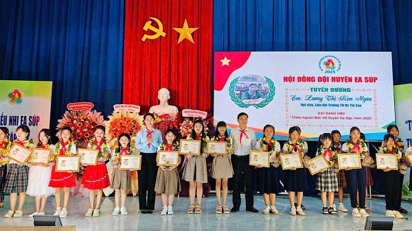Dịp này, Đại hội đã tuyên dương 60 em đội viên, thiếu nhi đạt danh hiệu Cháu ngoan Bác Hồ cấp huyện. Khen thưởng 03 tập thể đạt giải cuộc thi báo tường trưng bày tại Đại hội Cháu ngoan Bác Hồ huyện Ea Súp lần thứ IX, năm 2025.
