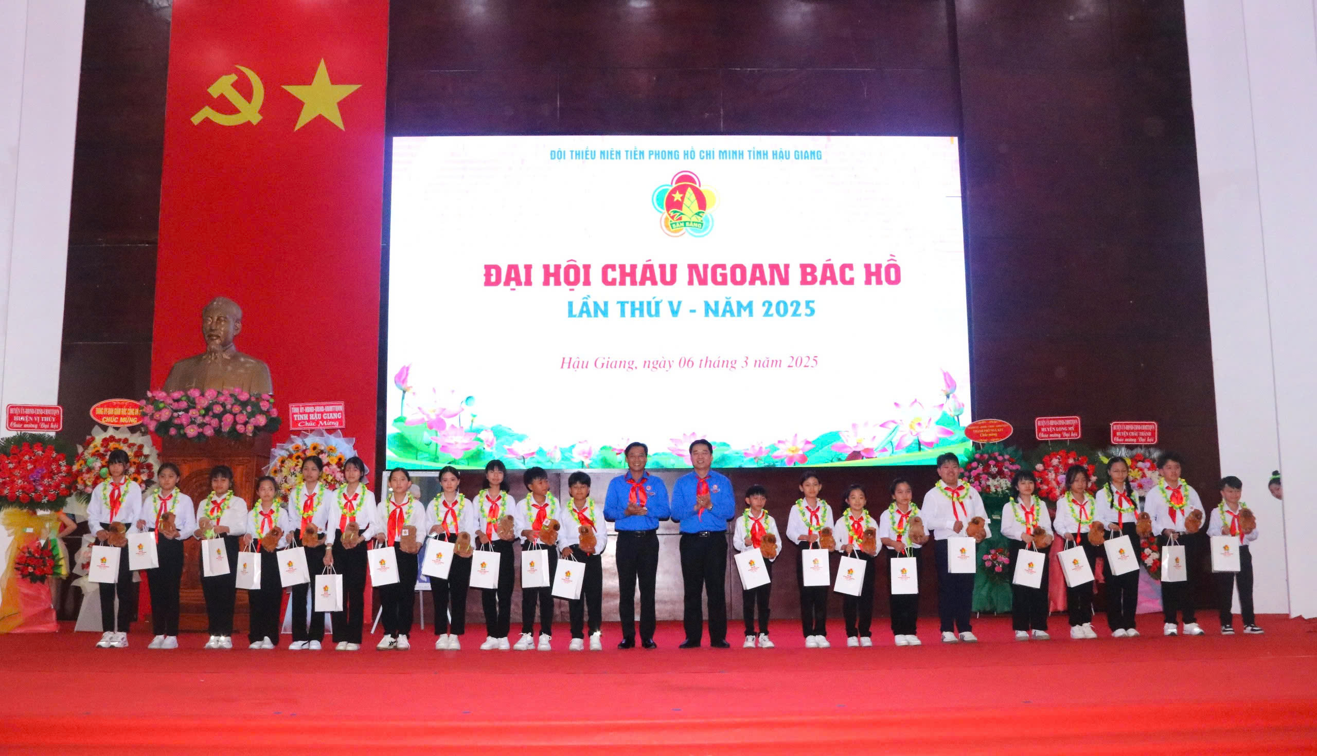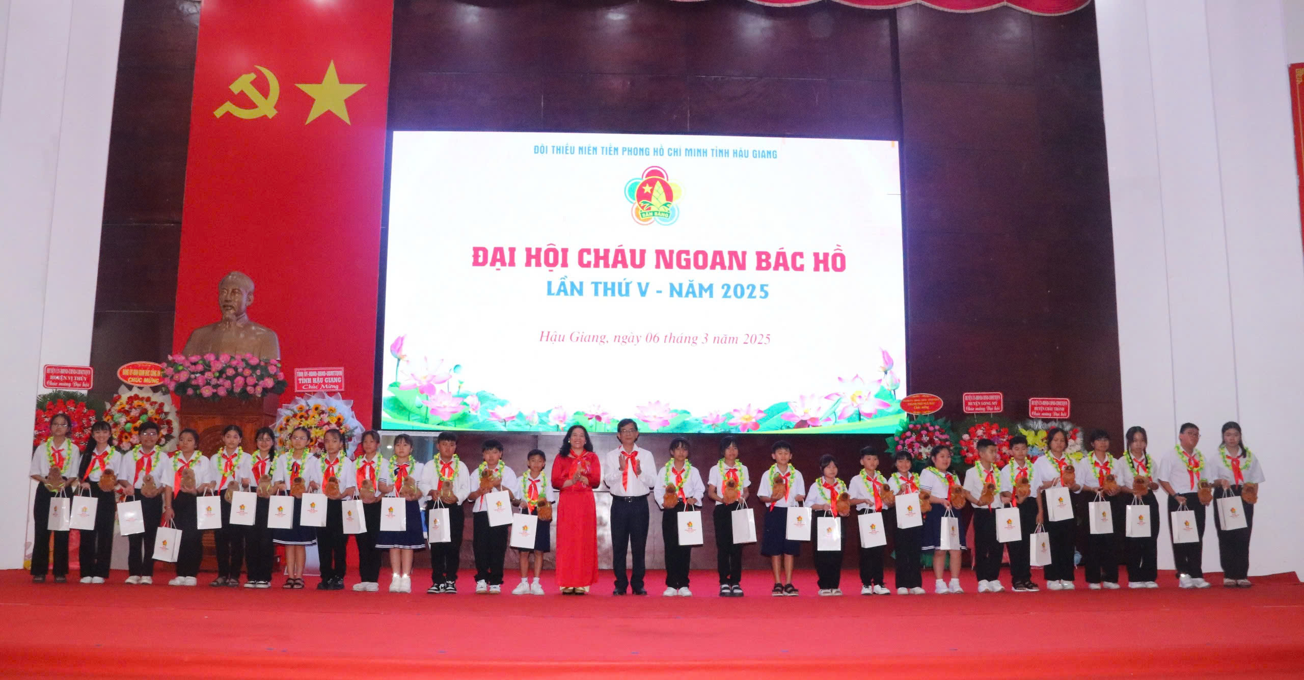 Tại Đại hội, đồng chí Nguyễn Tuấn Anh, Phó Bí thư thường trực Tỉnh ủy gửi tặng Đại hội bức tranh “Bác Hồ đeo khăn quàng đỏ cho thiếu nhi”. Ban Tổ chức Đại hội cũng đã tuyên dương 26 em học sinh là đội viên tiêu biểu trong công tác Đội và phong trào thiếu nhi, trao tặng 200 giấy chứng nhận Cháu ngoan Bác Hồ tỉnh Hậu Giang giai đoạn 2020 - 2025.